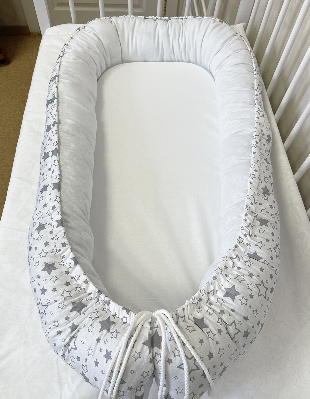 Кокон для ребенка можно использовать в любое время и в любом месте: в детской коляске, в кроватке или на родительской постели, создав крохе свое собственное отдельное спальное место рядом с родителями. Матрас кокон для новорожденных можно брать с собой в гости или путешествовать, с ним ребенок будет чувствовать себя уютно и комфортно.